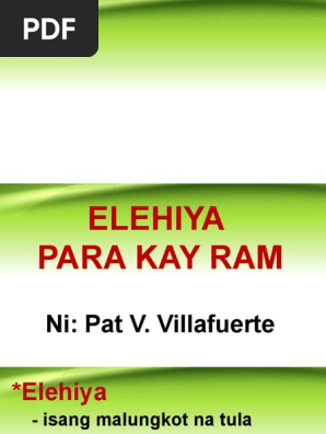 ELEHIYA Sa paksang ito ating aalamin kung ano ang buod ng tulang Elehiya Para Kay Ram at ang kahulugan nito. Intertexts are sentences that are either true or false and must undergo test of truth. 1 on a question Ano ang kahulugan ng elehiya para kay ram ni pat v.
