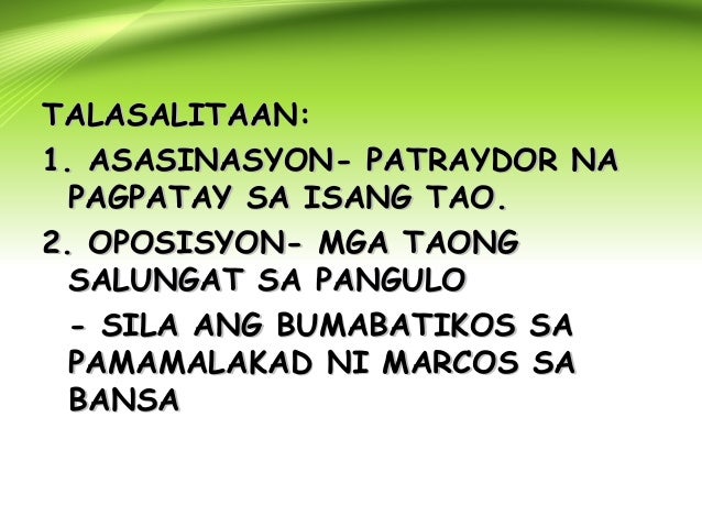 Buod tungkol sa pagpaslang kay ninoy aquino 1 See answer princessnicolelargo princessnicolelargo Si Ninoy Aquino ay isang tanyag na mamamahayag at pulitiko sa Pilipinas. ANG PAGPASLANG KAY NINOY. Pablo Solomon Martinez ang negosyanteng si Eduardo Danding Cojuangco na mastermind ng pagpaslang kay Aquino may 24 taon na ang nakararaan.