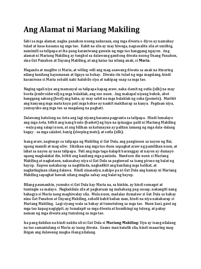 Maraming kung ano anong kwento tungkol dito sa Makiling eh kaya gusto ko talaga maakyat to. Alamat Ni Maria Makiling Buod Si Mariang Makiling ay isang diwata na mayroong magandang mukha mahabang buhok at mabuting kalooban. Bundok Makiling PAGLALARAWAN SA TAGPUAN.
