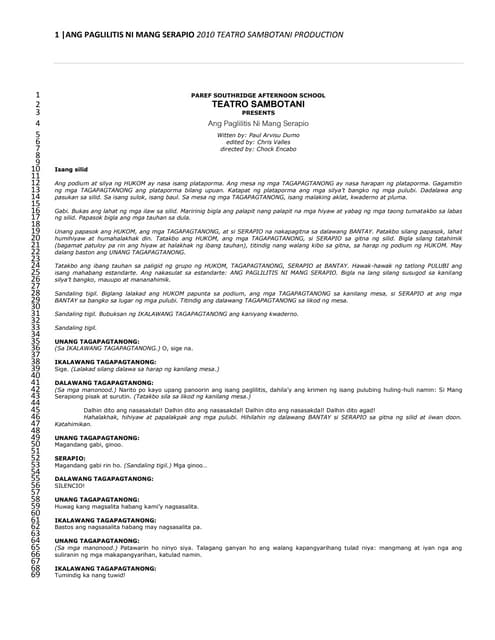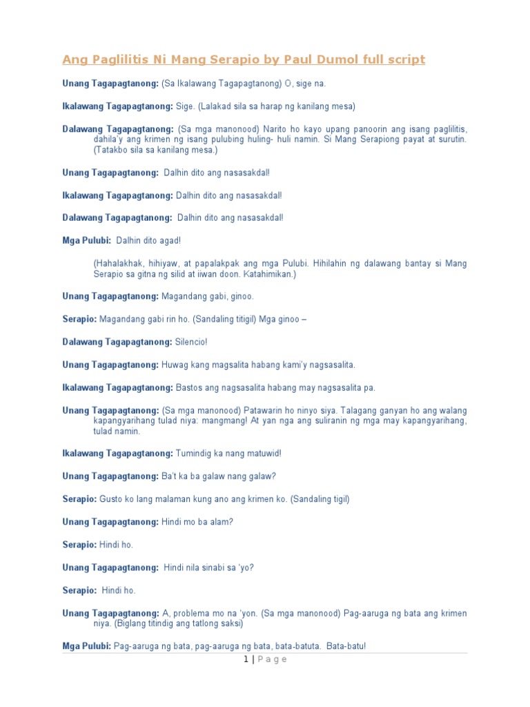 Ang Paglilitis Ni Mang Serapio By Paul Dumol Full Script