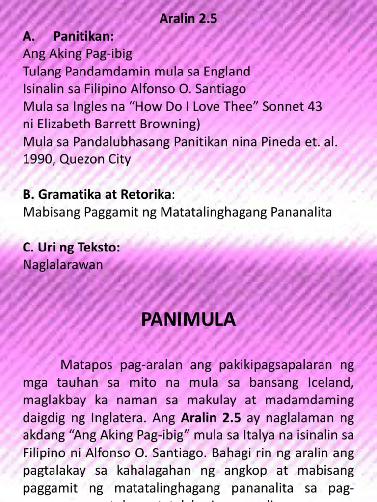 Huwag sanang tampo sa kapway. Ang Aralin 25 ay naglalaman ng akdang Ang Aking Pag-ibig mula sa Italya na Isinalin sa Filipino ni Alfonso O. At kung sa Diyos naman na ipagtalaga Malibing may lalong iibigin kita.